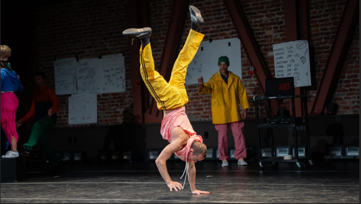 I have a story about Catherine Galasso’s dance piece, 10,000 steps, and here’s how it goes. The first section is about how our generation is defined by a collective understanding of what’s positive. And this has some positive results. For instance, happiness, health, community and individual expression are the touchstones for millennials and beyond. The performance communicates this right away: the dancers are dressed in comfortable colorful clothing and they each find a way to dance across the blank space of the stage in their own unique way, while the others watch. Meanwhile, a designated counter fixes their stare on each person as they dance, clicking to track each step. A large digital ticker sits center stage and the red numbers increase with each step and each click.