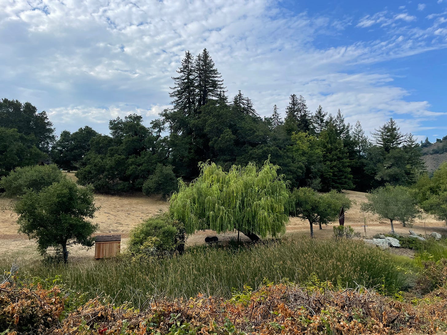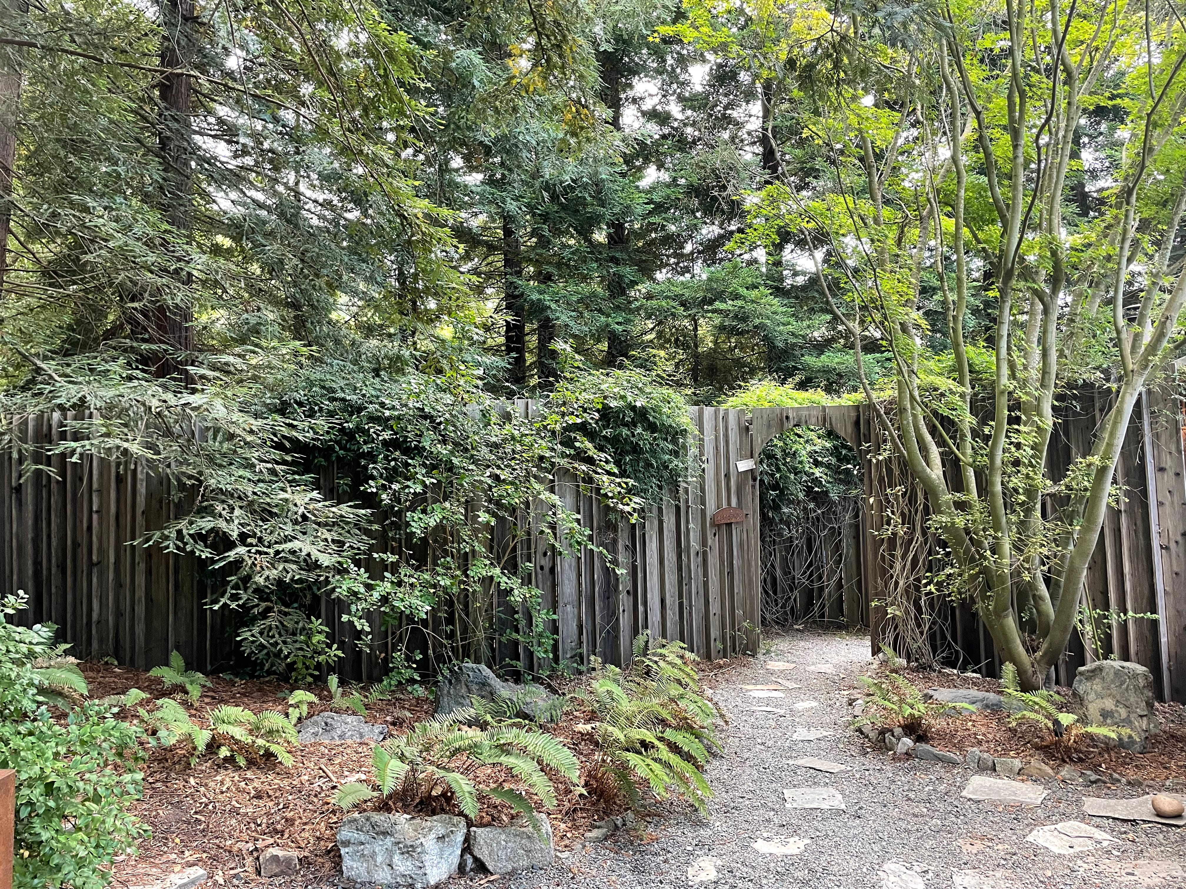 First I tried to eat at the fancy place: the restaurant at The Post Ranch Inn, but they only had room at 5:30pm and it was empty. I walked in and sat down and faced the ocean and looked at the menu and the $145 pre-fixe and walked out - but found my way down a path through the woods on the edge of the cliffs with treehouses on stilts and a few classing looking people ambling slowly. From the path the restaurant looked like a hobbit hole and many of the non-treehouse cabins were also hidden from view by grassy roofs. The whole property, down to the fence behind the gallery at the bottom of the hill had that clean look - a perfect weeping willow at the edge of a duck pond - some huge tree stumps in the middle of a filed - a lot like a sculpture, a lot like nature, is it good to blur the line?