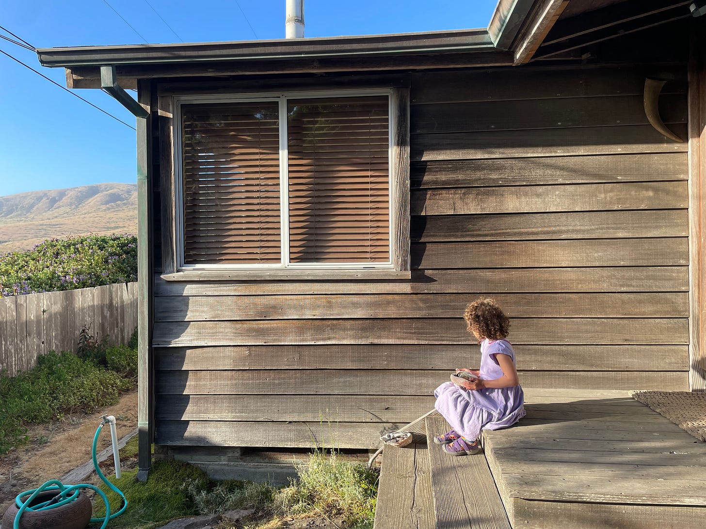 The first thing Olive found at our AirBandB was the otter magnet on the fridge. This was a good omen, I thought, though it was hard to concentrate on good because I was so hungry. “Let’s go touch our toes to the water,” she had said as soon as we arrived, eyeing the thin creek that was between us and the ocean. Instead I drove us to town where we paid too much for grilled cheese and then way too much for pasta and cheese from one of those small town bodegas but we needed some dinner.